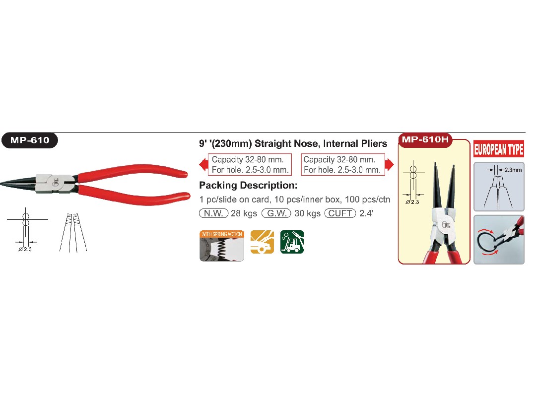 Μυτοτσίμπιδο ασφαλειών GT Taiwan, μήκους 220mm για εσωτερικές ασφάλειες, ισιο κλεινει.