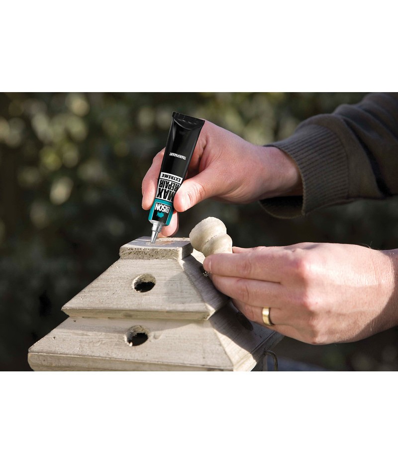 Η Max Repair Extreme είναι μια εξαιρετικά ισχυρή κόλλα για την επισκευή πορώδων και μη πορώδων υλικών όπως ξύλο, ύφασμα, δέρμα, φελλός, μέταλλο, γυαλί, πλαστικό, καουτσούκ, κεραμικά πλακίδια, πέτρα, τσιμέντο και πολλά άλλα υλικά. Κατάλληλο για εσωτερικούς και εξωτερικούς χώρους. Το Max Repair Extreme βασίζεται στην τεχνολογία πολυμερών της BISON. Τα προϊόντα που βασίζονται σε αυτήν την τεχνολογία εγγυώνται μια καθολική, ισχυρή, ευέλικτη, μακροχρόνια, ασφαλή και φιλική προς το χρήστη λύση για καθημερινή χρήση.